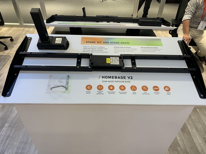 現(xiàn)場展品的桌腿均配置了新的驅(qū)動結(jié)構(gòu),不僅自鎖力更強(qiáng),外觀也更加精巧。